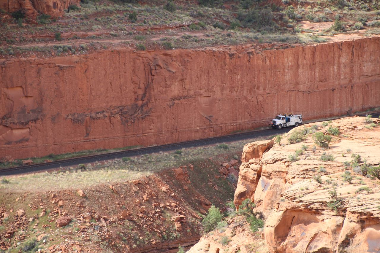 Comme ce matin, on voit des départs de routes qui doivent amener à des points de vues accessibles qu’en 4×4 et aussi des campings « primitifs » le long du Colorado. Quand je dis « primitif » c’est une traduction à la va-vite du terme américain, cela signifie qu’il n’y a pas de confort type eau/courant/douche sur les emplacements. Du coup pour les fans de nature, c’est une excellente manière de s’approprier les zones naturelles surtout que ces campings qui ne sont pas vraiment adaptés aux RV sont souvent bien placés.