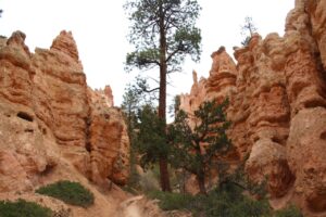 On retourne sur nos pas mais nous n’allons pas remonter à Sunset Point tout de suite, car on va faire Peek-A-Boo loop qui est une randonnée difficile. On est toujours sur un sentier (donc rien de commun avec la randonnée Devil’s Garden) mais c’est une vraie montagne russe. On passe notre temps à monter et descendre sur des pentes très fortes. En bas, on est dans une espèce de pinède et on fait « whaaaaa » en regardant les hoodoos d’en bas (on peut faire Whaaaa il n’y a pas de sable ici). Et en haut on fait « Whaaaaou » tellement vu de près c’est encore plus féerique. Regardez par vous même !