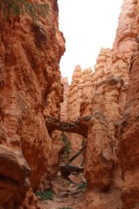 On enchaîne avec Navajo Loop qui est une boucle en temps normal qui part et arrive de Sunset Point. Normalement il s’agit donc de descendre dans l’amphithéatre par un chemin puis de remonter par l’autre. Un des passages se nomme Wall Street, c’est un sentier très sinueux (digne d’un col de montagne du tour de France) qui serpente entre 2 parois verticales. Souvent à cette période de l’année, le NPS doit évacuer des rochers qui sont tombés et ont abîmé la route pendant l’hiver. Sans surprise donc, Wall Street est fermé. On peut quand même arriver jusque l’entrée de ce passage et ça vaut vraiment le détour car les paysages sont sympas.