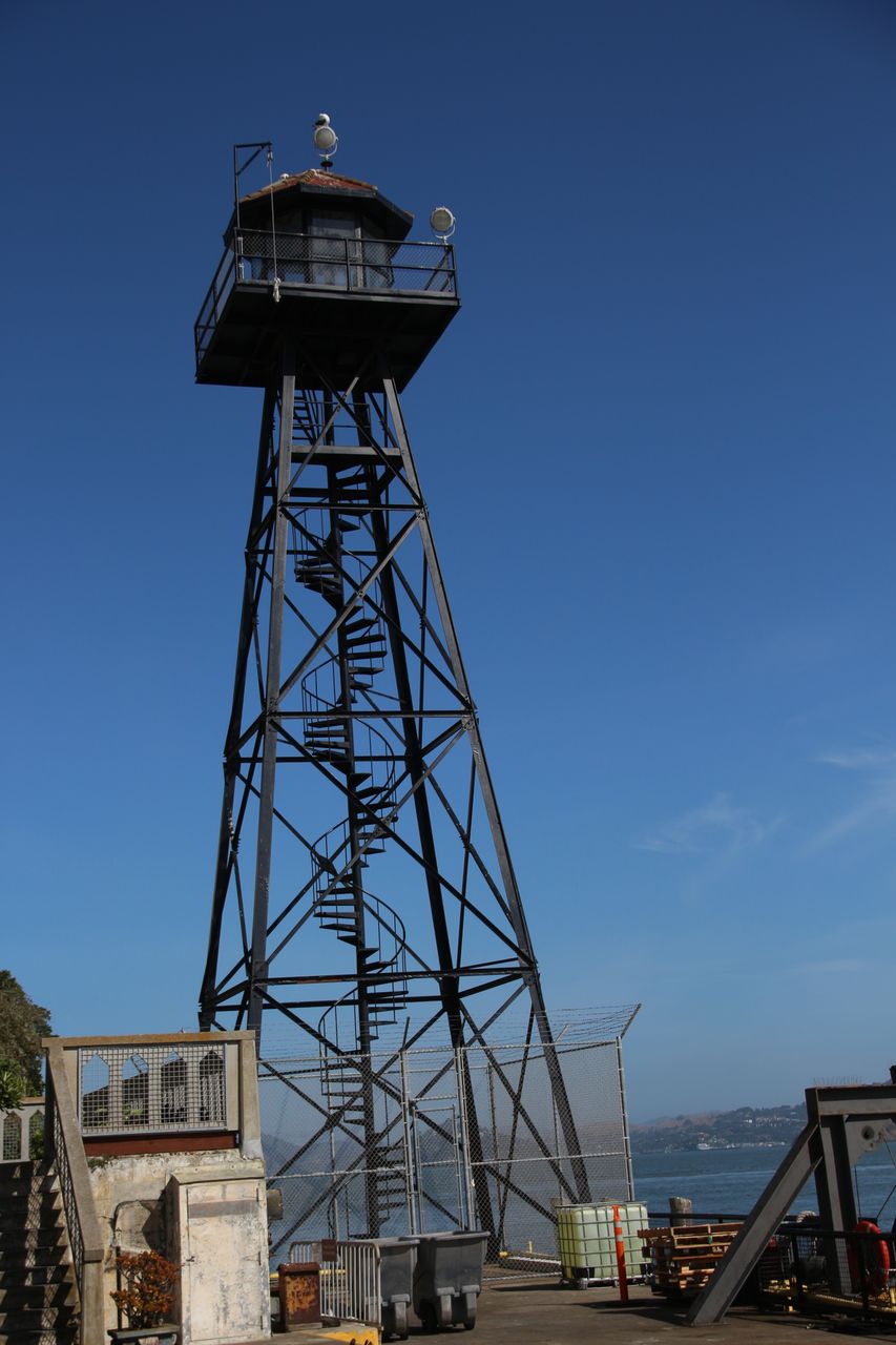Nous arrivons sur le ponton et commençons notre visite. Les lieux ne sont pas franchement accueillant, les premières impressions sont assez glaçantes. Certains bâtiments sont en ruine, d’autres semblent laissés à l’abandon. Après il s’agit d’une prison, ce n’est pas non plus un club de vacances. Nous remarquons que le château d’eau est couvert de tags. Nous apprendrons par la suite que dans les années 70, des natifs américains se sont installés sur l’île qui n’était plus une prison afin d’y établir une sorte de société utopique car aux États-Unis ils subissaient la discrimination. L’occupation va durer 2 ans avant que le gouvernement fédéral n’y mette un terme. Les vestiges de cette occupation sont conservés tout comme le passé pénitentiaire du site.