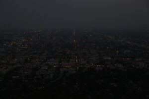 J‘essaie de faire de jolies photos de la ville qui s’allume mais le manque de pratique dans des conditions nocturnes et l’absence du trépied vont rendre le résultat assez moche. Tant pis j’ai toujours l’image dans ma tête :p Si vous voulez de belles photos il y en a plein la toile ! Voici quand même à quoi ça ressemblait vaguement :